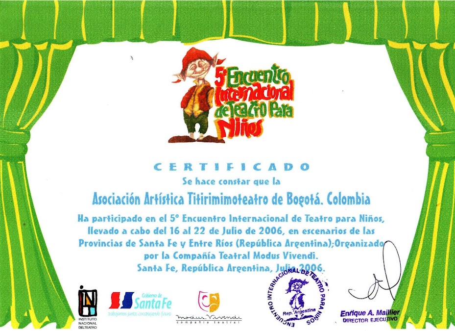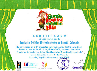 La Asociación Artística Titirimimoteatro con una trayectoria de más de 23 años experimentando en el laboratorio de la poesía dramática en todos los escenarios del mundo....Colombia, México, Cuba, República Dominicana, Guatemala, Venezuela, Ecuador, Perú, Bolivia, Paraguay, Uruguay, Brasil, Argentina, Chile...entre otros.